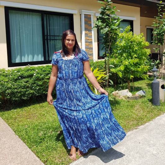 Dress 1: Starting off with this blue cotton dress that I bought in Dubai. It was on sale for just $15 and was 2 sizes bigger for me – but I ended up buying it and altering it at home myself. Just had to sew the bust and sleeves to a smaller size and voila! Its a super comfortable cotton full-length dress with nice details. I wore it on my vacation to Krabi, Thailand – very beachy feel.